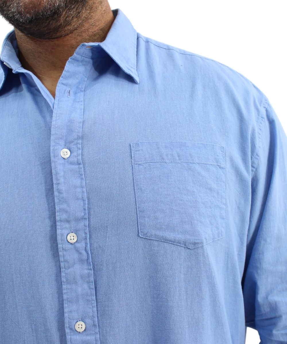 Indulge in the luxurious softness of this long sleeve linen shirt, expertly crafted from a blend of 77% cotton and 23% linen. Experience the perfect combination of comfort and style with this sophisticated and exclusive piece, made from premium materials to elevate your wardrobe. Embrace the classic elegance of timeless linen, elevated by the breathability and durability of cotton, for a refined and tasteful look. Whether dressing up for a special occasion or simply seeking comfort in your everyday attire, this shirt will make a statement of impeccable taste.