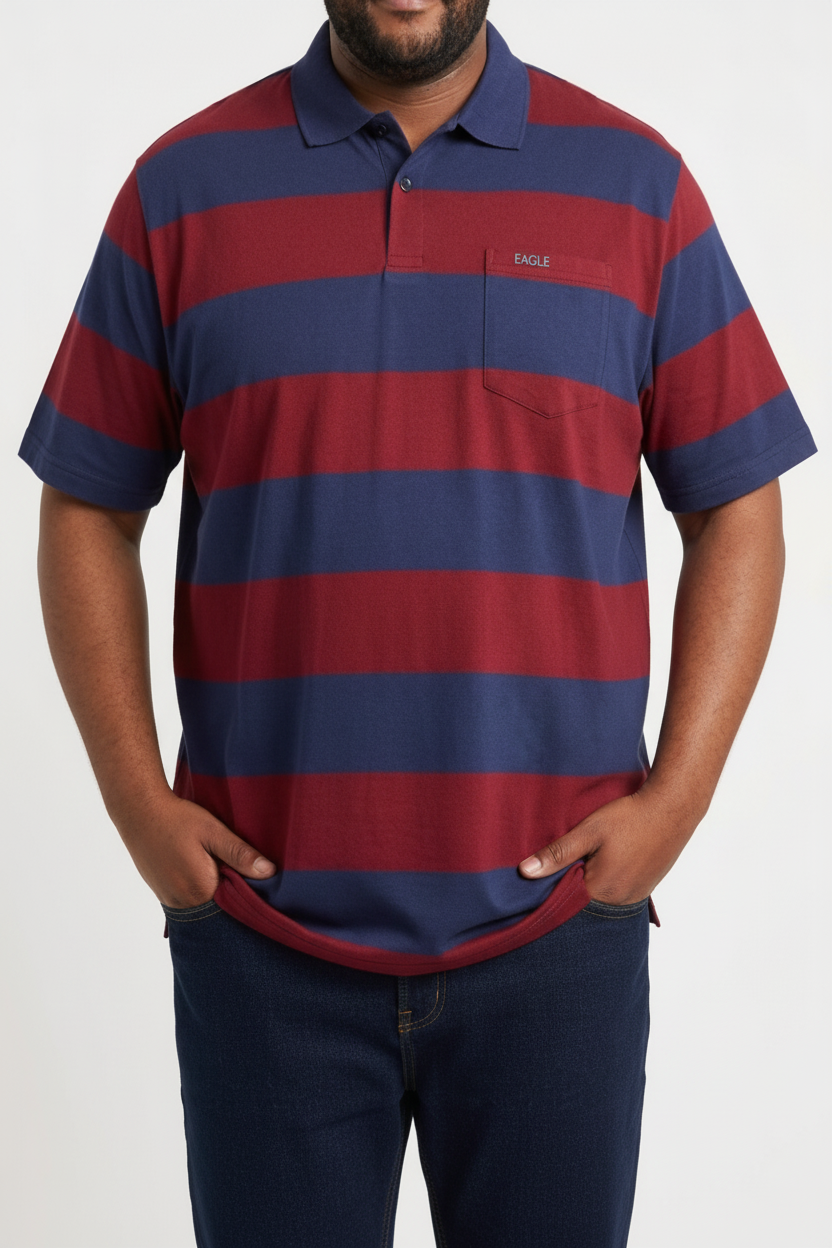 Classic striped golf shirt combining navy and burgundy tones for a sophisticated look on and off the course. The timeless colour combination pairs effortlessly with neutral trousers or shorts, making it a versatile addition to any wardrobe. Designed for comfort and style, this piece delivers the polished appearance golfers appreciate.
